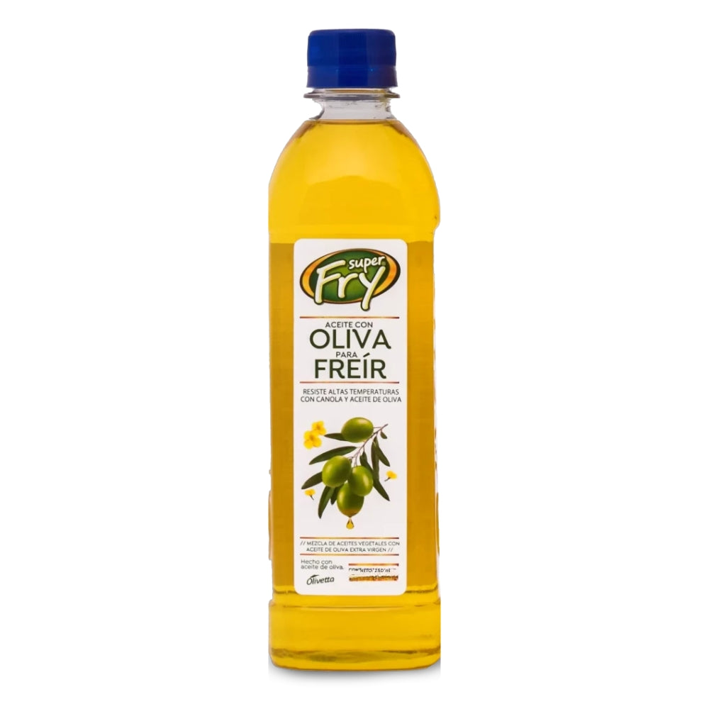 Presentamos ACEITE 100 OLIVA SUPER FRY 250 ML. Elaborado con aceite de oliva 100%, este aceite de cocina versátil saca lo mejor de todos tus platos. La elección perfecta para comidas sanas y deliciosas.