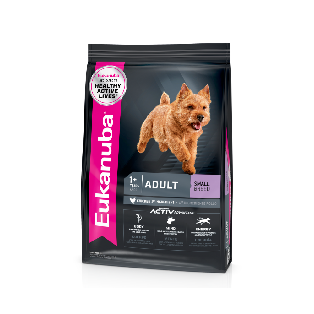 El alimento seco para perros Eukanuba Adult Small Breed es una nutrición completa y equilibrada para perros de razas pequeñas mayores de 12 meses y que pesan hasta 10 kilos.
