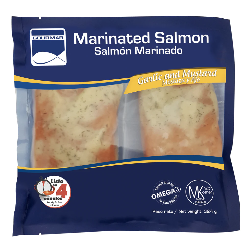 ¡Descubre el Duo Pack de Salmón con Mostaza y Ajo de Gourmar! Con 25 años de experiencia en productos marinos premium, Gourmar te ofrece salmón de la más alta calidad, libres de colorantes y aditivos artificiales.