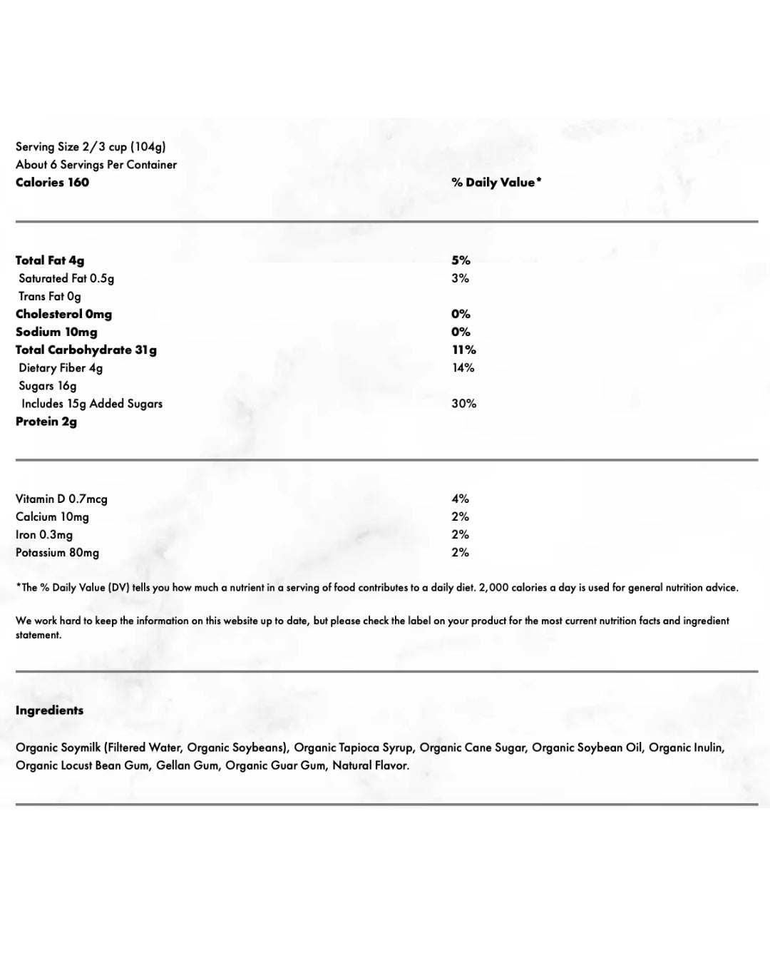 Este DELICIOSO helado de vainilla de 32 OZ está elaborado con leche de soja, ofreciendo una textura cremosa y suave. Disfrute de una delicia sin lácteos sin sacrificar el sabor. Elaborada con ingredientes nutritivos, disfrute de esta opción a base de plantas sin sentirse culpable.