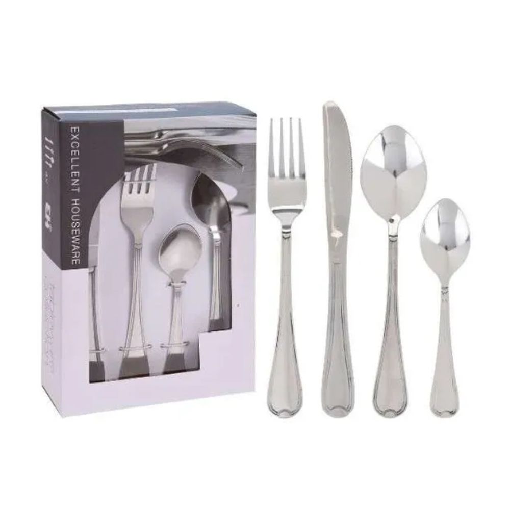 JUEGO DE CUBIERTOS DE ACERO INOXIDABLE COLOR GRIS DE 16 PIEZAS