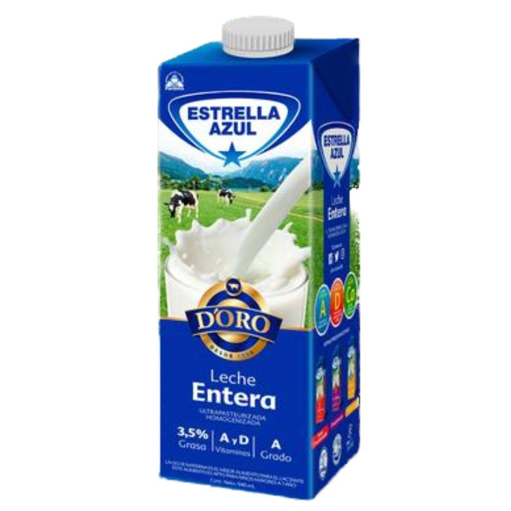 Contenido: 946ml de Leche Entera D'Oro Estrella Azul