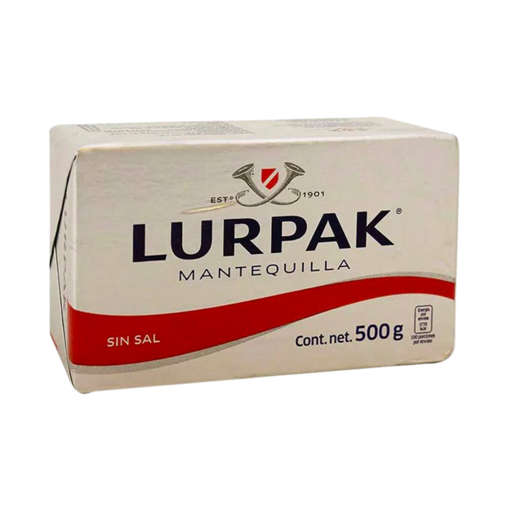 Contenido: 500g de Mantequilla Sin Sal Lurpak
