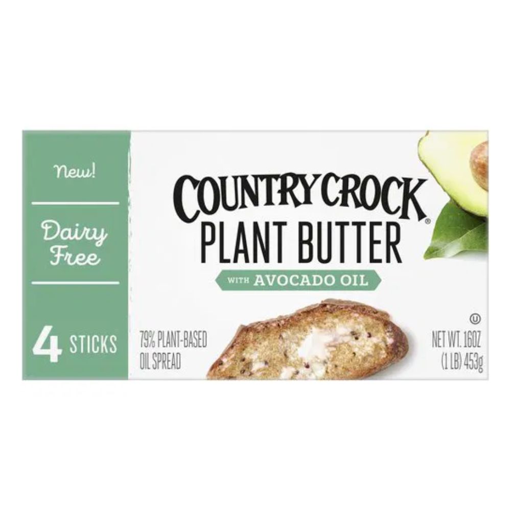 Elaboramos la mantequilla vegetal Country Crock con aceites vegetales y las diferentes recetas incluyen aceites de aguacate y aceitunas. Tiene sabor a mantequilla láctea y es excelente para cocinar, hornear y untar. Es de origen vegetal, sin lácteos y sin gluten.