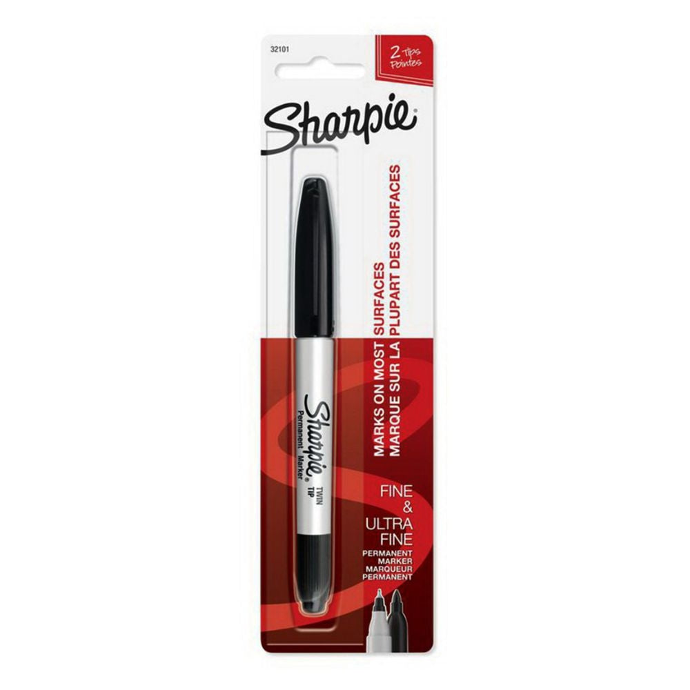 Los Sharpies han sido uno de los marcadores permanentes más populares jamás fabricados. Estos marcadores son conocidos por secarse rápidamente, ser permanentes y resistentes al agua en la mayoría de superficies difíciles de marcar, como vidrio, metal, fotografías, papel estucado y la mayoría de los plásticos. Este paquete contiene un marcador Sharpie negro de doble punta, uno ultra fino y otro fino. Cumple con la norma ASTM D4236. Hecho en EE.UU.