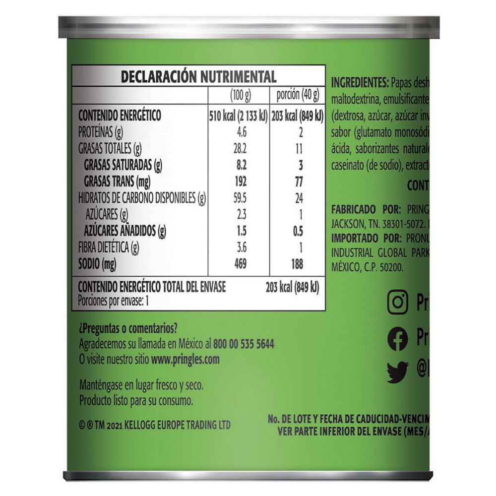 Disfruta el sabor único de las Papitas Pringles sabor cebolla en presentación de 40 gramos. Crujientes y llenas de sabor, son el snack perfecto para cualquier momento del día. Su práctico tamaño las hace ideales para llevar contigo y compartir en reuniones o disfrutar en solitario. Dale un toque delicioso y diferente a tus antojos con Pringles cebolla.