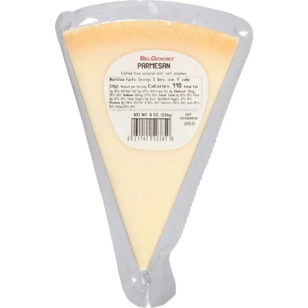 Contenido: 8 onzas de Cuña de Queso Parmesano BelGioioso.