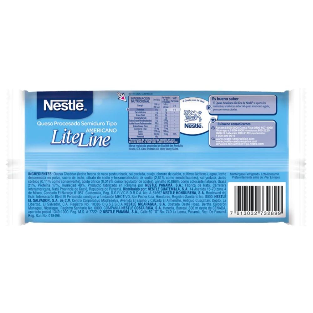Queso Procesado Tipo Americano Lite Line. 100% Queso, hecho con leche de vaca. Con un delicioso sabor y un derretimiento único, Quesos Nestlé deleita tus paladares y será el aliado perfecto para tus comidas.