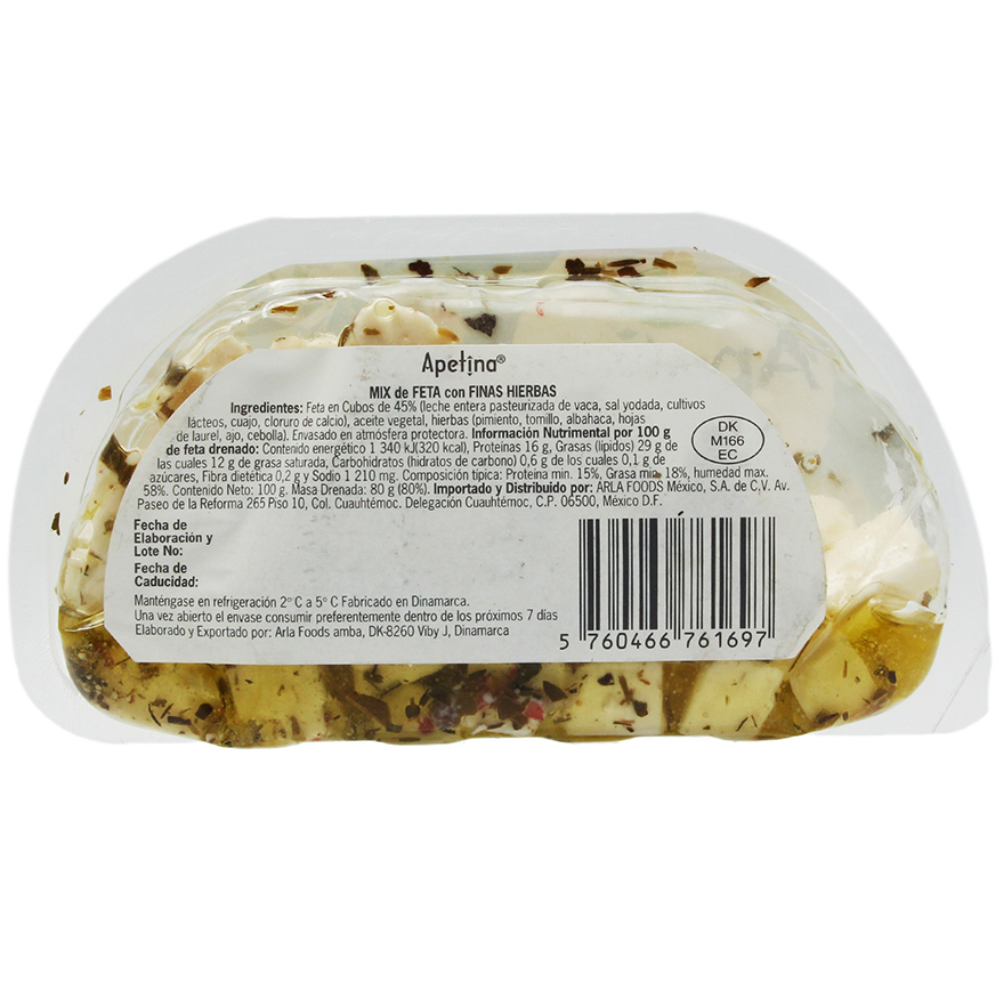 Contenido: 100g de Queso Feta Apetina Estilo Mediterráneo Finas Hierbas.