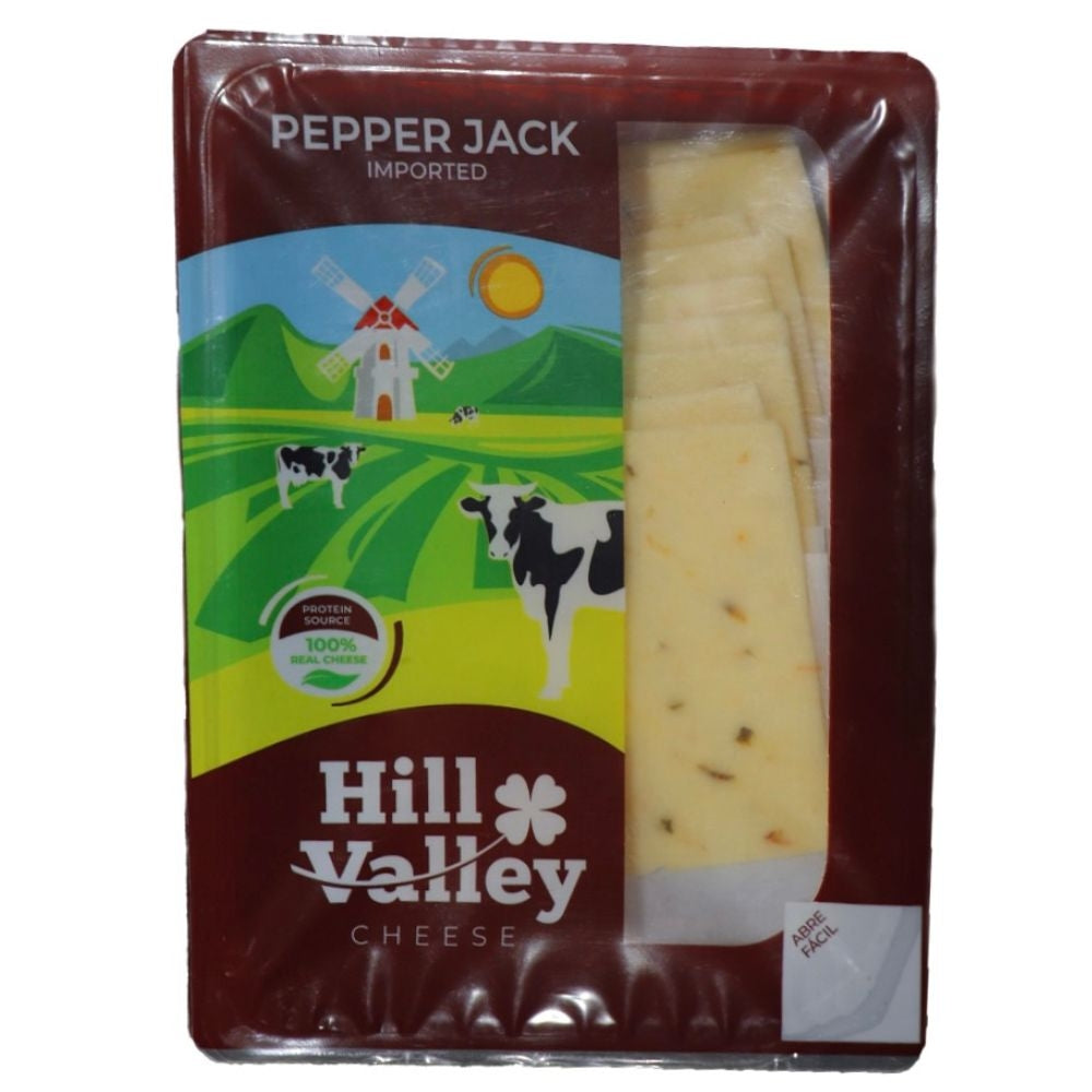 Contenido: 170g de Queso Pepper Jack Rebanado Hill Valley.