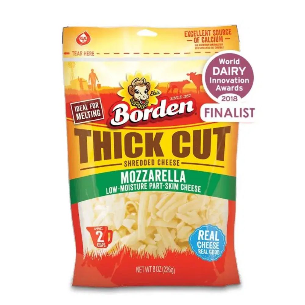 QUESO MOZZARELLA RALLADO DE CORTE GRUESO BORDEN 8 ONZAS