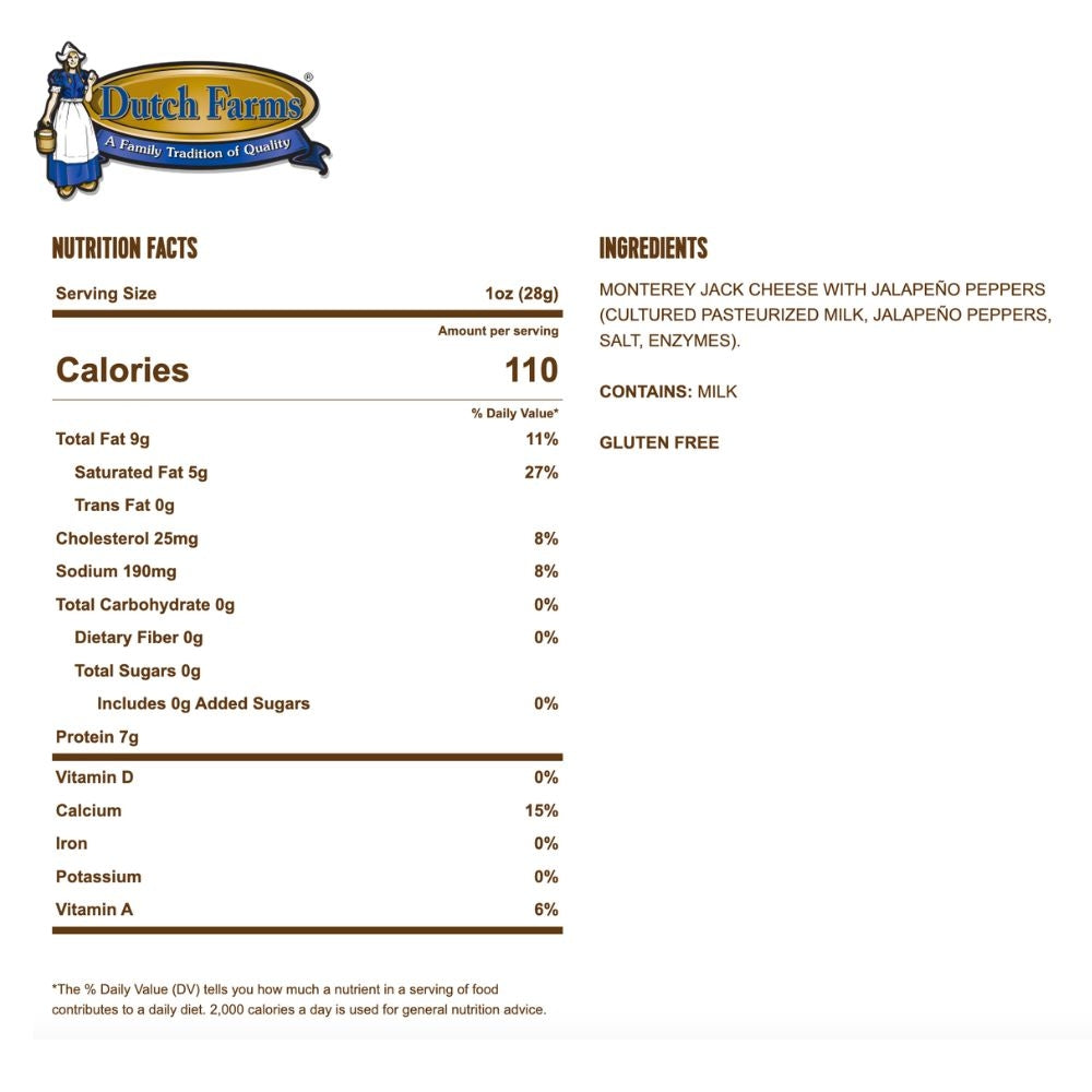 Contenido: 227g de Queso Pepper Jack en Barra Dutch Farms.