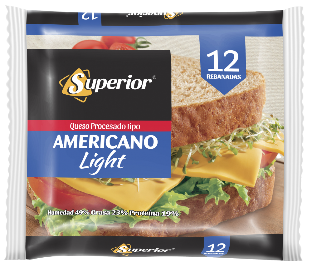 El queso americano light de la marca Superior ofrece el mismo sabor delicioso y cremoso, pero con menos grasa y calorías. Disfruta de su suavidad y versatilidad.
