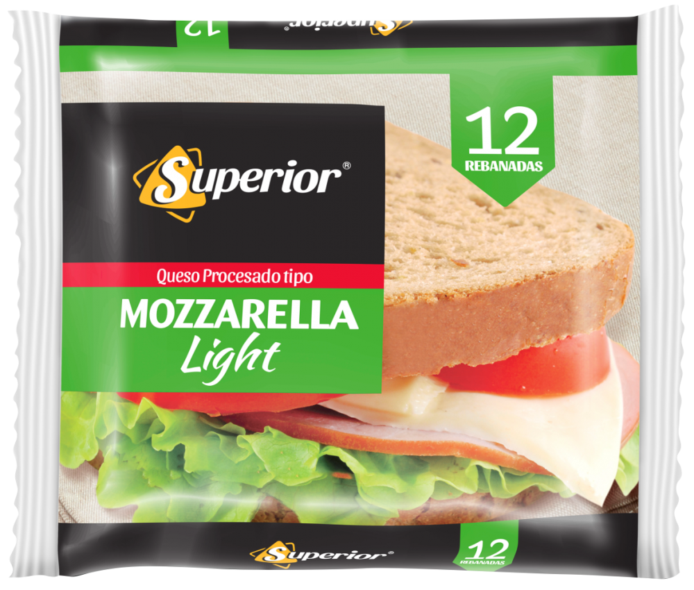 Contenido: 12 rebanadas de Queso Mozzarella Light Procesado Superior