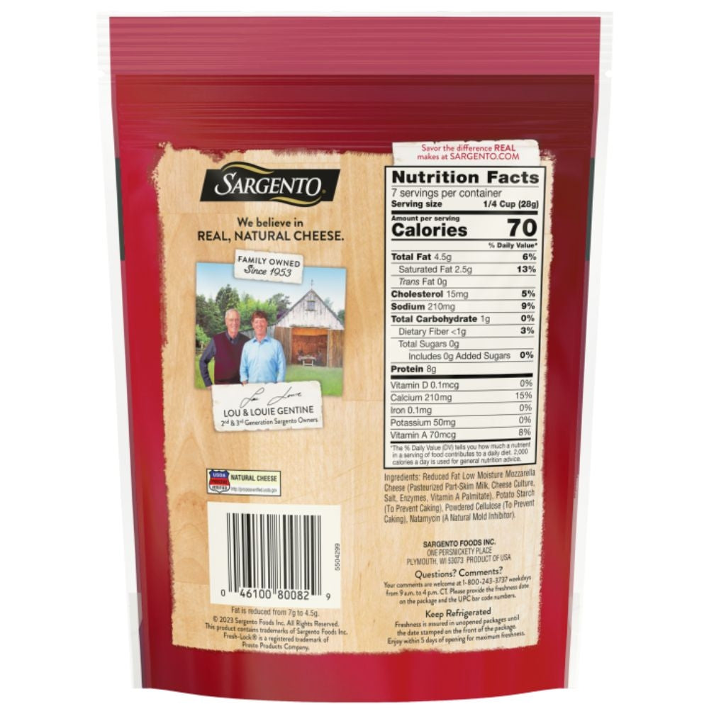 Contenido: 8 onzas de Queso Mozzarella Reduced Fat Rallado Sargento.