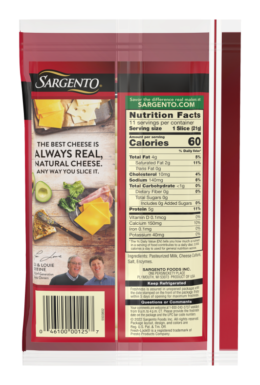 Contenido: 11 rebanadas de Queso Mozzarella Sargento.