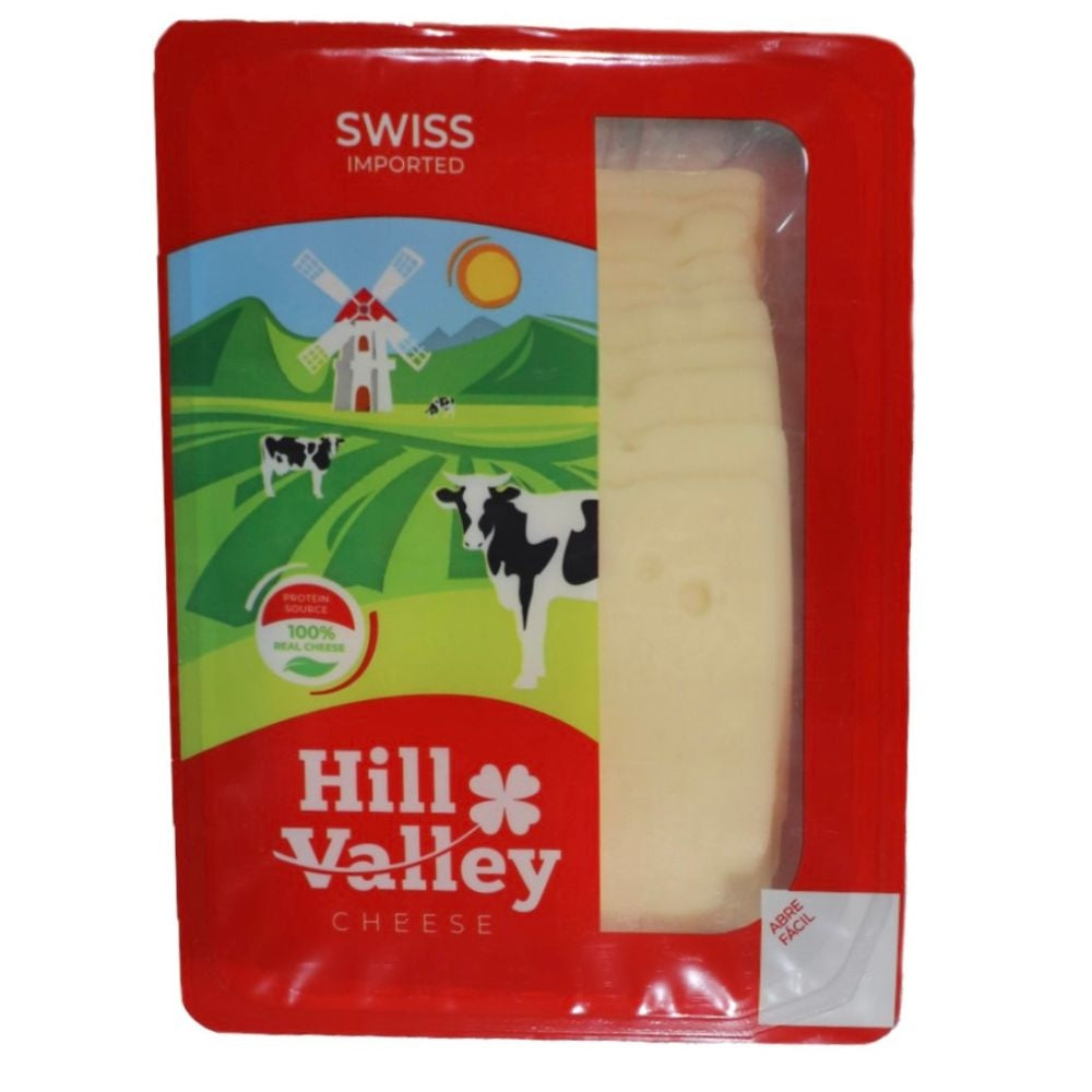 Contenido: 170g de Queso Suizo Rebanado Hill Valley.