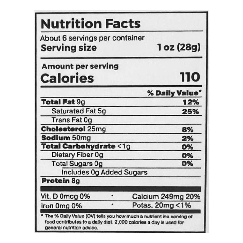 Ingredientes: Leche Entera pasteurizada, cultivo de queso, sal, y enzimas.