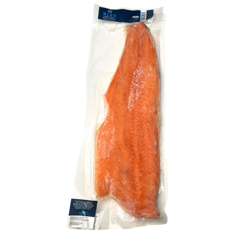 Contenido: 2.5 libras Filete Entero Salmón Nemo. Empacado al vacío.