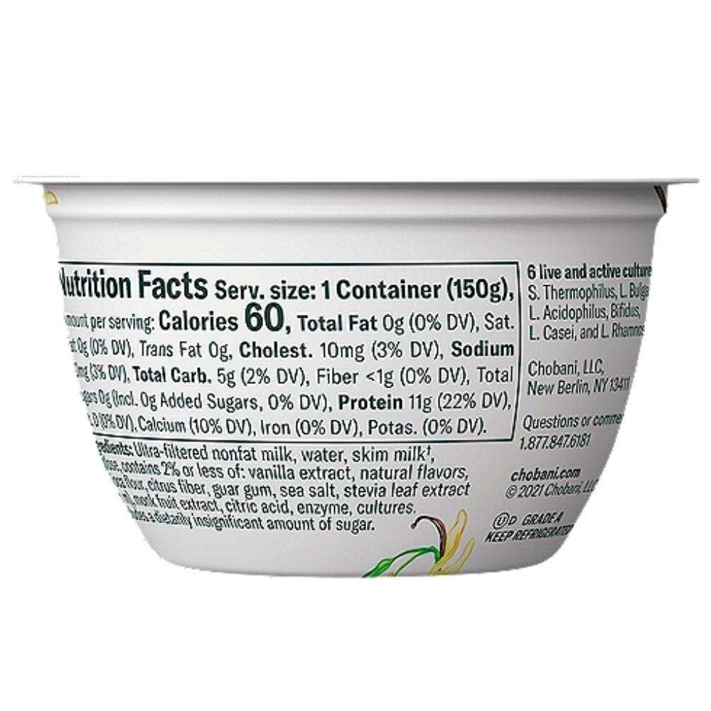 Contenido: 150g de Yogurt Chobani de Vainilla Sin Azúcar.